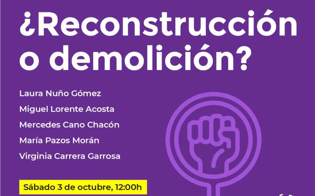 El profesor universitario y experto en violencia machista Miguel Lorente Acosta propuso una respuesta a la pregunta del debate, “¿Reconstrucción o demolición?”. “Para mí, la respuesta es remodelación. La estrategia tramposa del machismo y el patriarcado es la remodelación, cambiar para seguir igual, para intentar aprovecharse de las circunstancias a su favor”, explicó. “La situación actual de crisis es idónea para el modelo conservador de poder, para utilizar las circunstancias objetivas para recuperar espacios de poder que los hombres han ido perdiendo”, añadió.